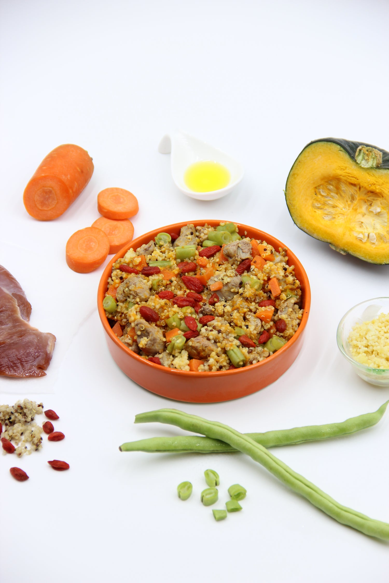 French Organic Duck Breast, Pumpkin, Carrots, Green Bean, Goji Berry, Millet, Organic Quinoa, Norwegian Salmon Oil, Organic Sunflower Oil, Eggshell Powder, Eggshell Membrane, Organic Kelp Powder